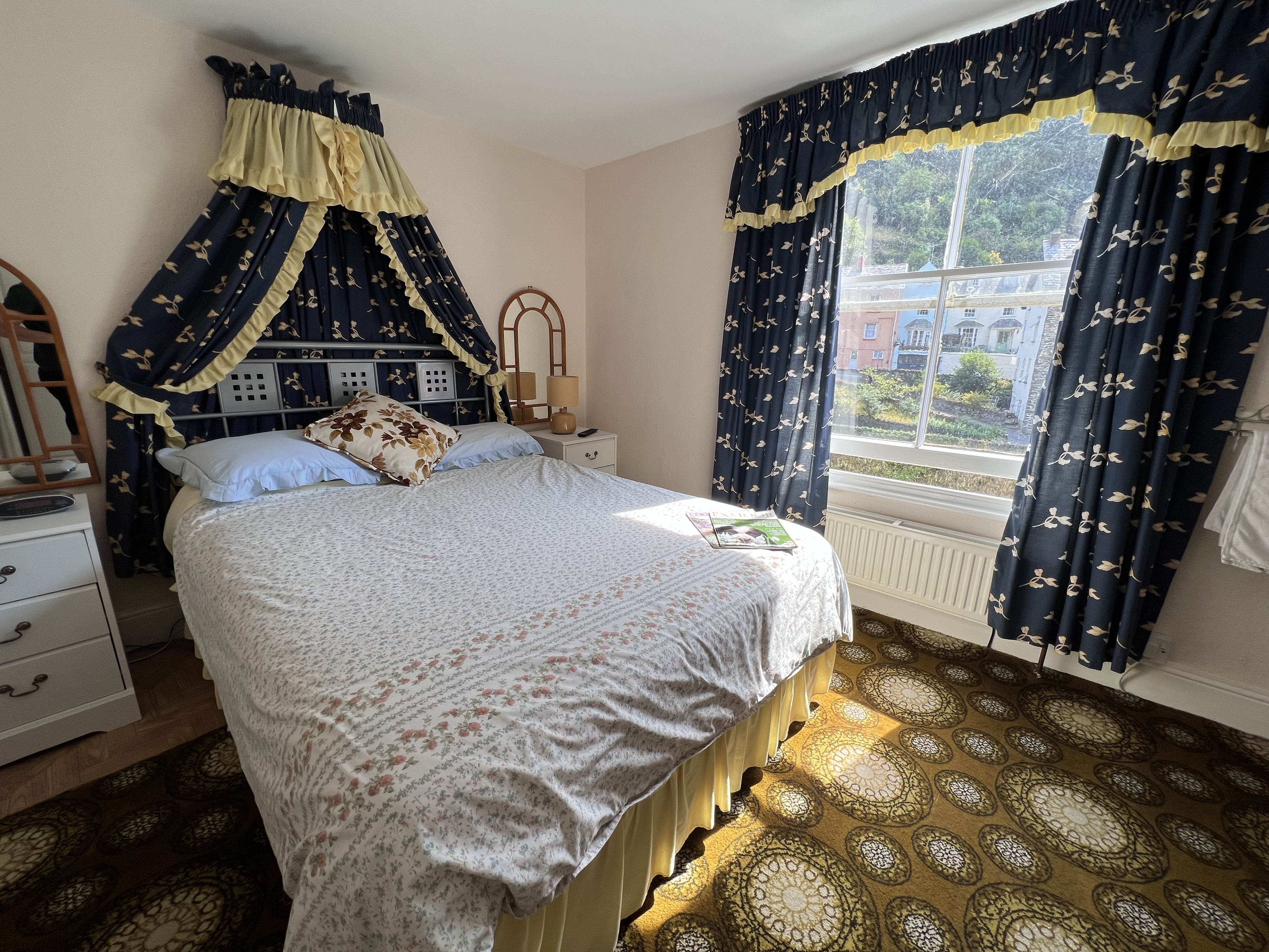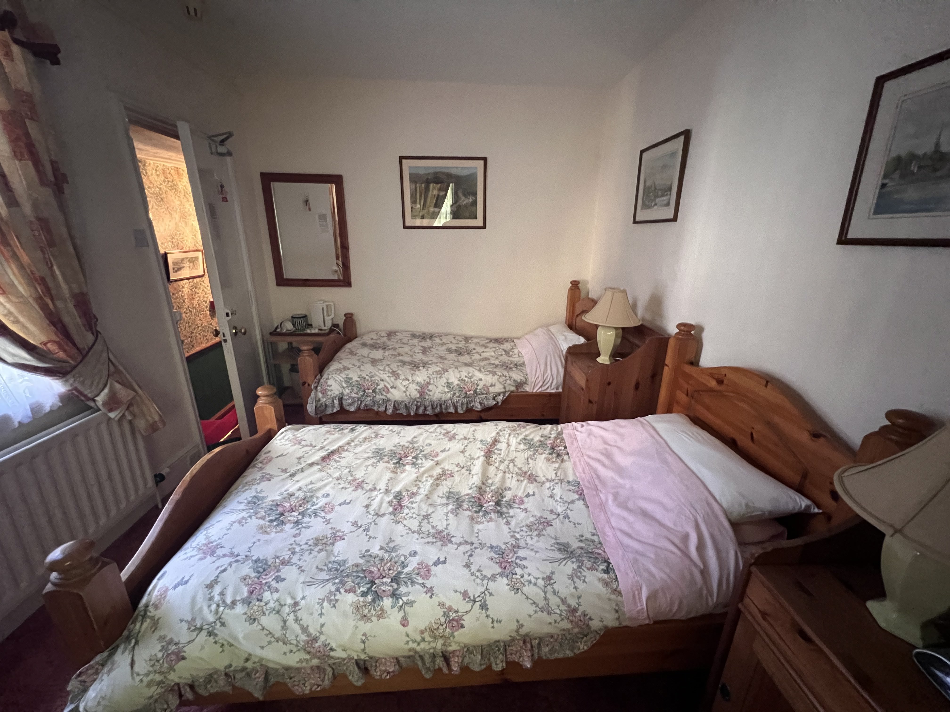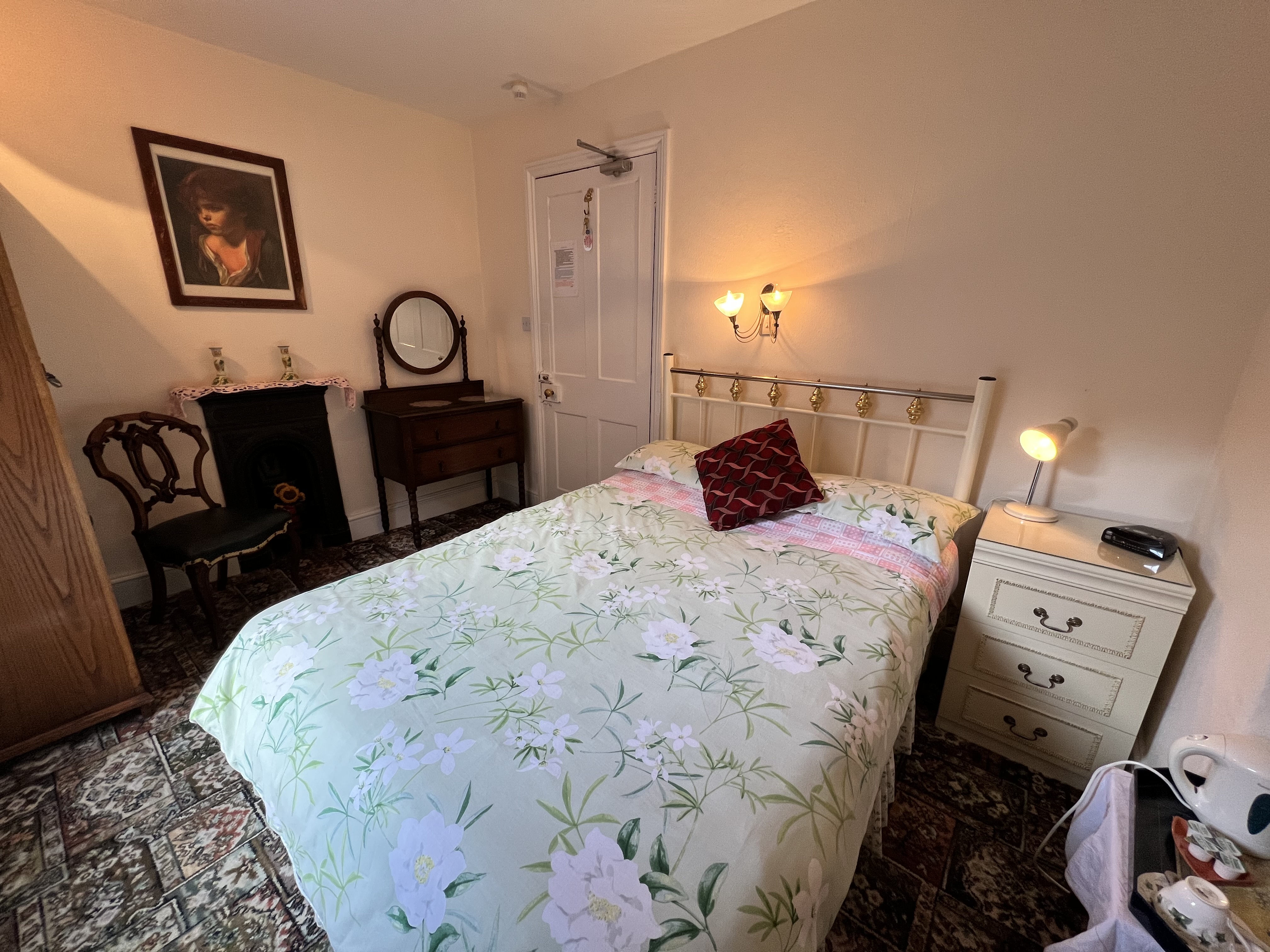 Notice for pets: The message informs that dogs are welcome with prior arrangement, and there’s a nightly fee of £25 per dog. To arrange accommodations, contact the provided telephone number. Guests are urged not to bring pets without coordination, as not all rooms are pet-friendly due to allergies. A suitable basket for the pet’s comfort is also requested.